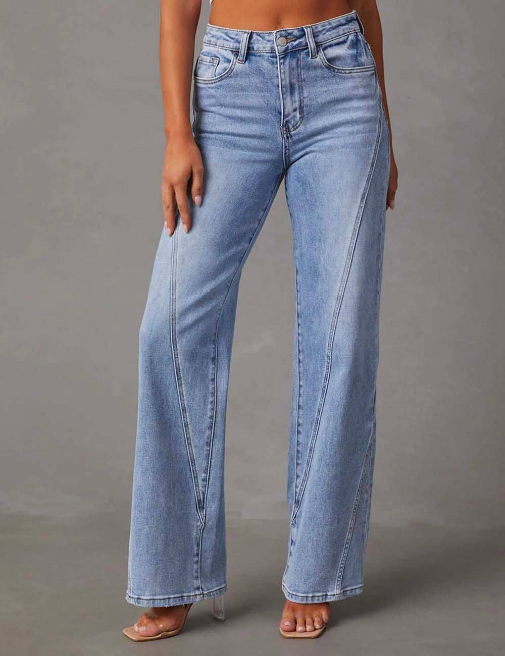 Ladies Daily Jeans Button Straight Leg Denim Pants